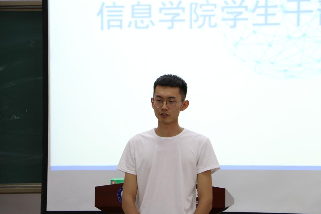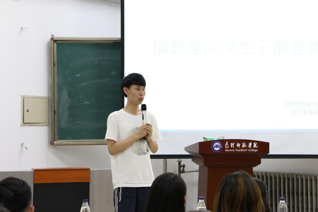 6月27日晚上,信息科学与技术学院在博学楼东606教室召开学生干部换届竞聘大会。信息学院副书记副院长郭宏升、学工办主任丁坤、辅导员高婷、姜嘉丽、王凝、刘爱军,团总支、学生会、社团联合会全体学生干部和各班班委会成员参加了会议。会议由学生会主席王吉儒主持。