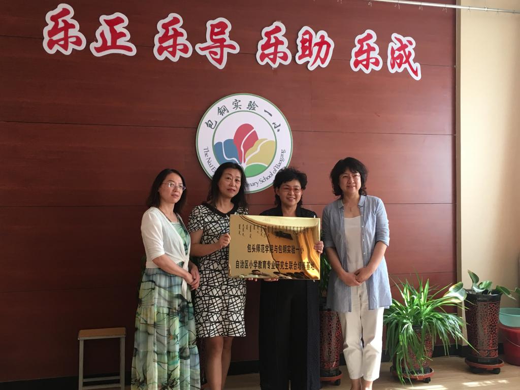 6月27日,教育科学学院在包钢实验一小举行自治区研究生联合培养基地授牌仪式。包钢实验一小宋建东校长、贺慧琴副校长以及包头师范学院教育科学学院院长郝红英、副院长李芳出席授牌仪式。