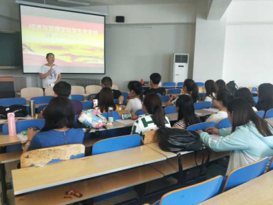 5月24日,经济与管理学院学生党支部召开集中学习研讨会,学生党支部书记袁爱荣主持会议。