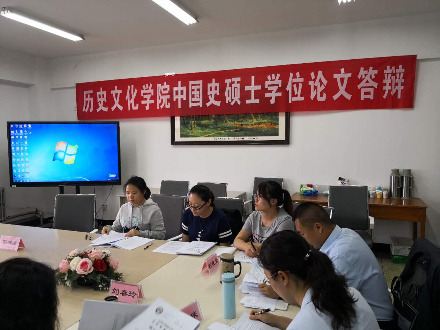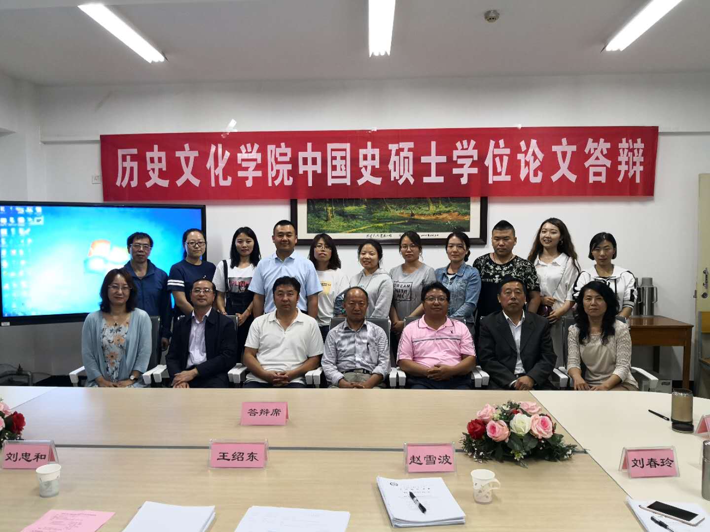 5月19日下午,历史文化学院在学院会议室举行2018届中国史硕士研究生学位论文答辩会。内蒙古大学历史与旅游文化学院硕士生导师王绍东教授担任本次答辩委员会主席,包头医学院教授刘忠和博士,内蒙古科技大学副教授赵雪波博士,包头师范学院历史文化学院刘春玲教授、宁侠博士、刘晓堂博士,文学院尚烨教授为答辩委员。吕喜林副教授担任答辩秘书。历史文化学院院长胡琮禹,答辩硕士生导师郝建平列席答辩会,历史文化学院全体在读研究生聆听了答辩会。