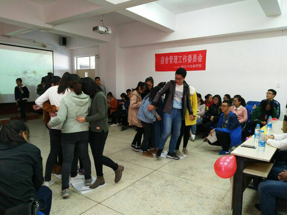 11月2日,政治与法律学院宿舍管理工作委员会在博学楼600教室举办了"快乐不落单"主题新老生趣味交流会。