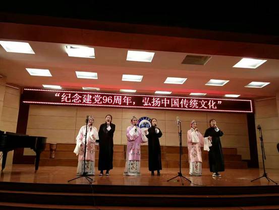 7月1日晚,音乐学院、资源与环境学院在音乐学院博艺厅联合举办“庆祝建党96周年、弘扬中国传统文化”特色党日活动。本次活动由“高唱国歌”、“重温入党誓词”、“观赏中国传统音乐教学团队《中国民族民间音乐》重点课程教学成果展演”三个部分组成。活动由音乐学院党总支书记李红梅主持。
