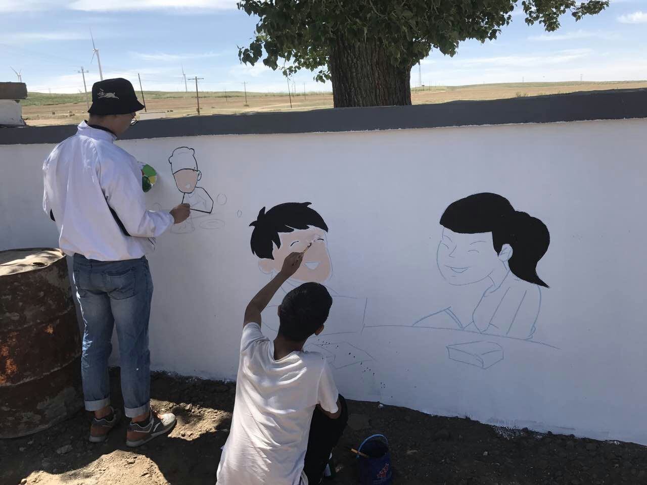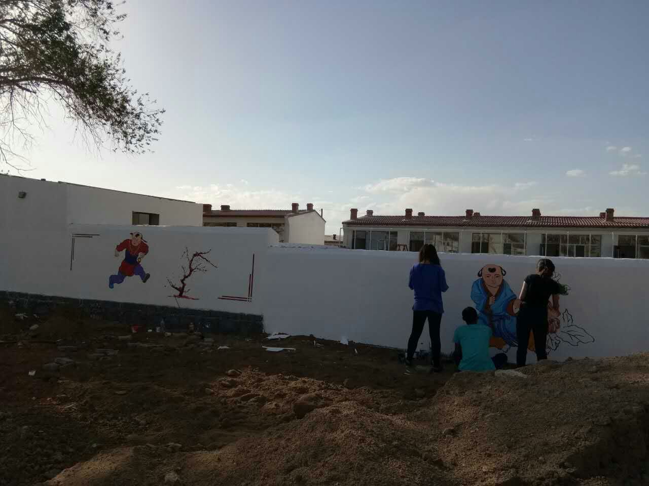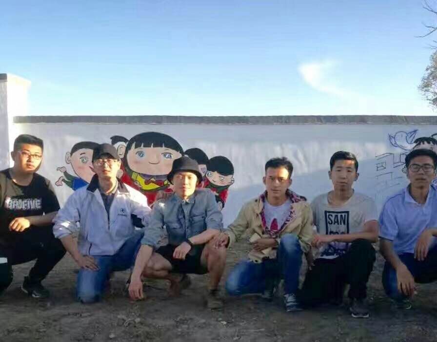 6月3日至6月13日期间,美术学院前后派出18名大学生志愿者来到我校定点扶贫地区固阳县怀朔古镇香房村和贾油坊村开展了以“精准扶贫、专业发力”弘扬社会主义核心价值观为主题的墙面彩绘活动。本次活动共历时12天,绘制了300多平米,40余幅图画,使村容焕然一新。经过11天的精雕细琢,怀朔古镇原本光秃秃的农家围墙已经“穿”上“七彩新衣”,40余幅手绘墙画完成,一个个生动形象的年画人物、一幅幅充满诗情画意的墙绘吸引了广大村民驻足观看。大学生们的精彩表现和奉献精神得到了当地村民和当地政府的一致认可。(美术学院)