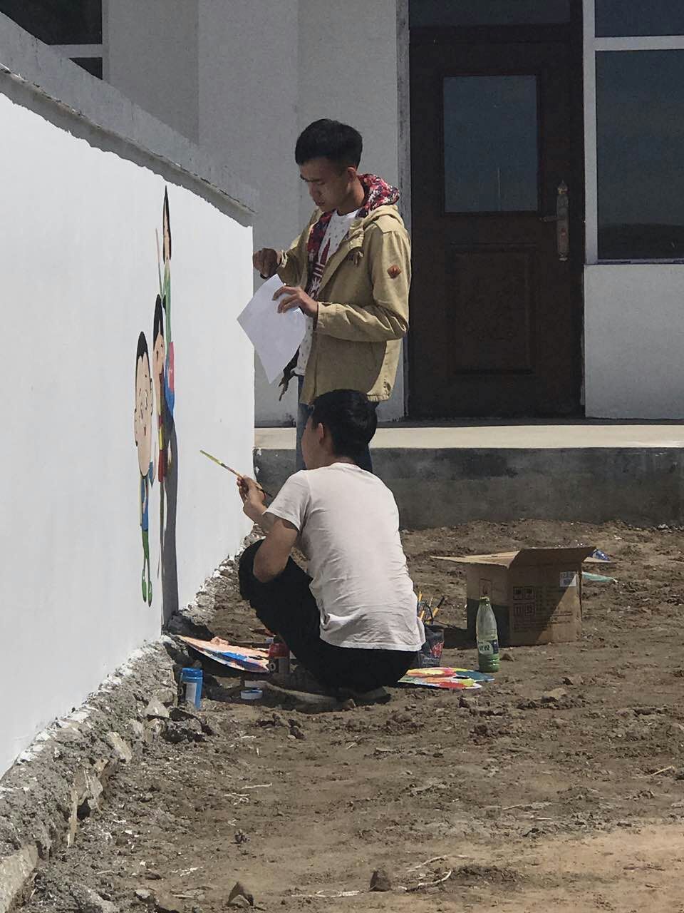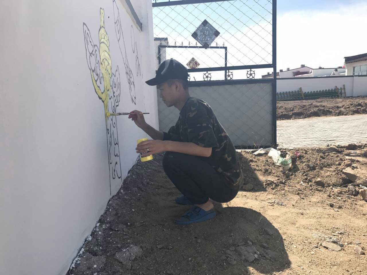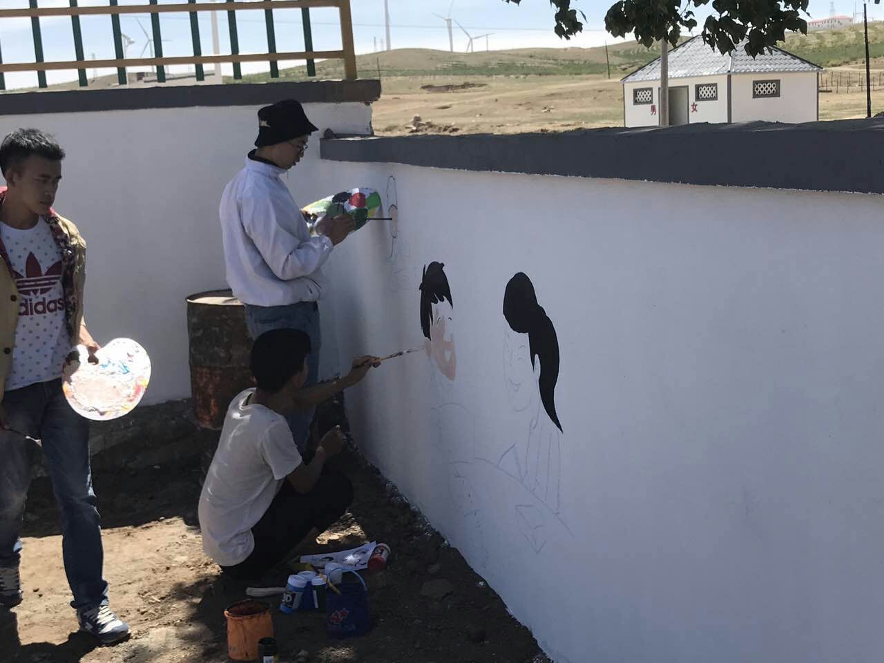 6月3日至6月13日期间,美术学院前后派出18名大学生志愿者来到我校定点扶贫地区固阳县怀朔古镇香房村和贾油坊村开展了以“精准扶贫、专业发力”弘扬社会主义核心价值观为主题的墙面彩绘活动。本次活动共历时12天,绘制了300多平米,40余幅图画,使村容焕然一新。经过11天的精雕细琢,怀朔古镇原本光秃秃的农家围墙已经“穿”上“七彩新衣”,40余幅手绘墙画完成,一个个生动形象的年画人物、一幅幅充满诗情画意的墙绘吸引了广大村民驻足观看。大学生们的精彩表现和奉献精神得到了当地村民和当地政府的一致认可。(美术学院)