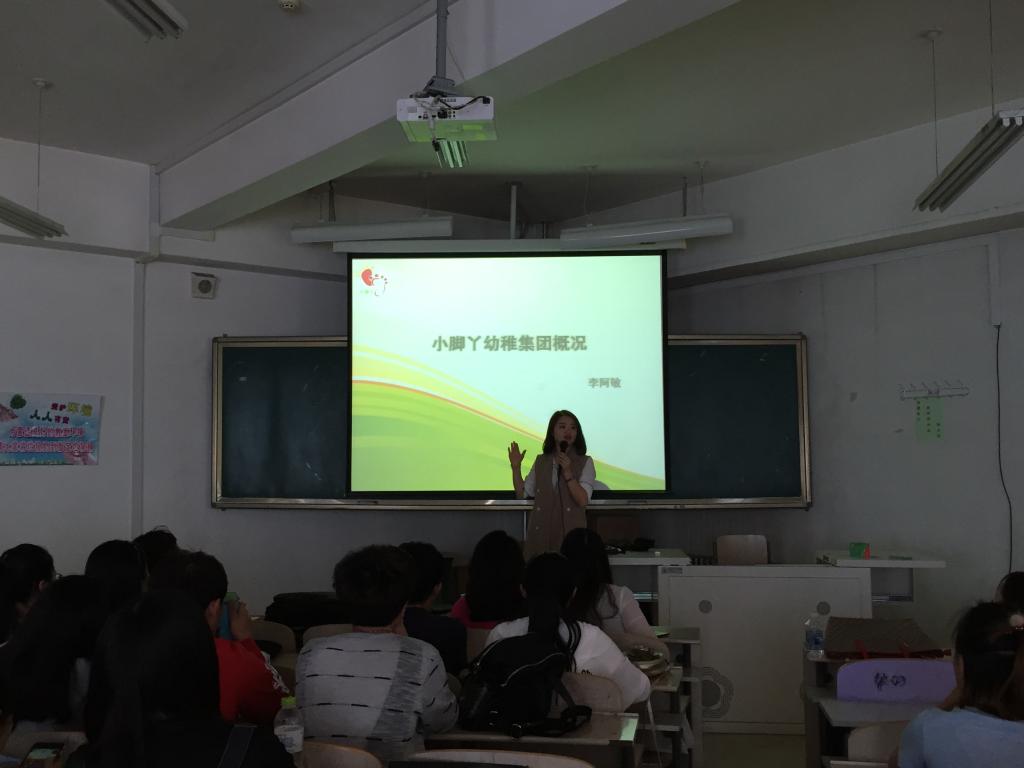 首先在博学楼东406教室分别由十一家用人单位宣讲介绍本单位的有关情况,董仙芝同志主持会议并介绍了参加本次招聘会的机构、公司名称和主要负责人。张岫峰同志代表教育科学学院作简短致辞,他对用人单位对毕业生就业工作的支持以及对毕业生的认可表示感谢,同时希望用人单位通过对毕业生的招聘考察,反馈我院毕业生培养中存在的问题,提出意见和建议;同时他希望广大毕业生更多的了解就业形势,充分认识社会力量办学的重要性,更新就业观念,多渠道、多形式选择就业。小脚丫幼儿集团下属的时代天骄国际幼儿园、东河区妇联北梁幼儿园、包头市科技少年宫、新生世纪幼儿园等十一个招聘单位负责人分别通过PPT展示、视频等方式向同学们介绍公司和幼儿园的概况、职业发展方向、人员需求、薪资状况、待遇保障以及相关情况。