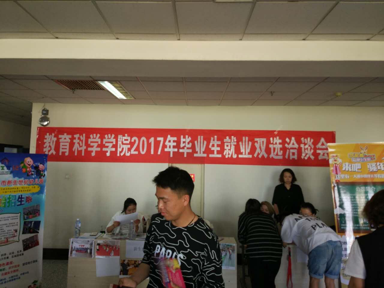 5月18日下午,教育科学学院举办了教育科学学院学前教育毕业生就业双选专场洽谈会。学院党总支书记张岫峰,学前教育系主任董仙芝,十一家教育机构负责人和相关代表及我院一百二十余名毕业生参加了本次双选会。