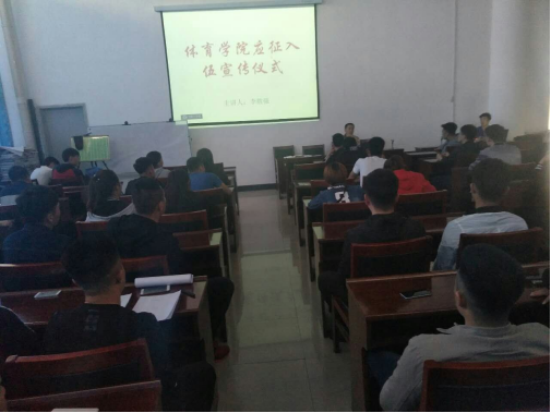 4月13日,体育学院邀请校武装部军事工作办公室主任李胜强为我2013级毕业生进行了应征入伍动员宣传讲。
