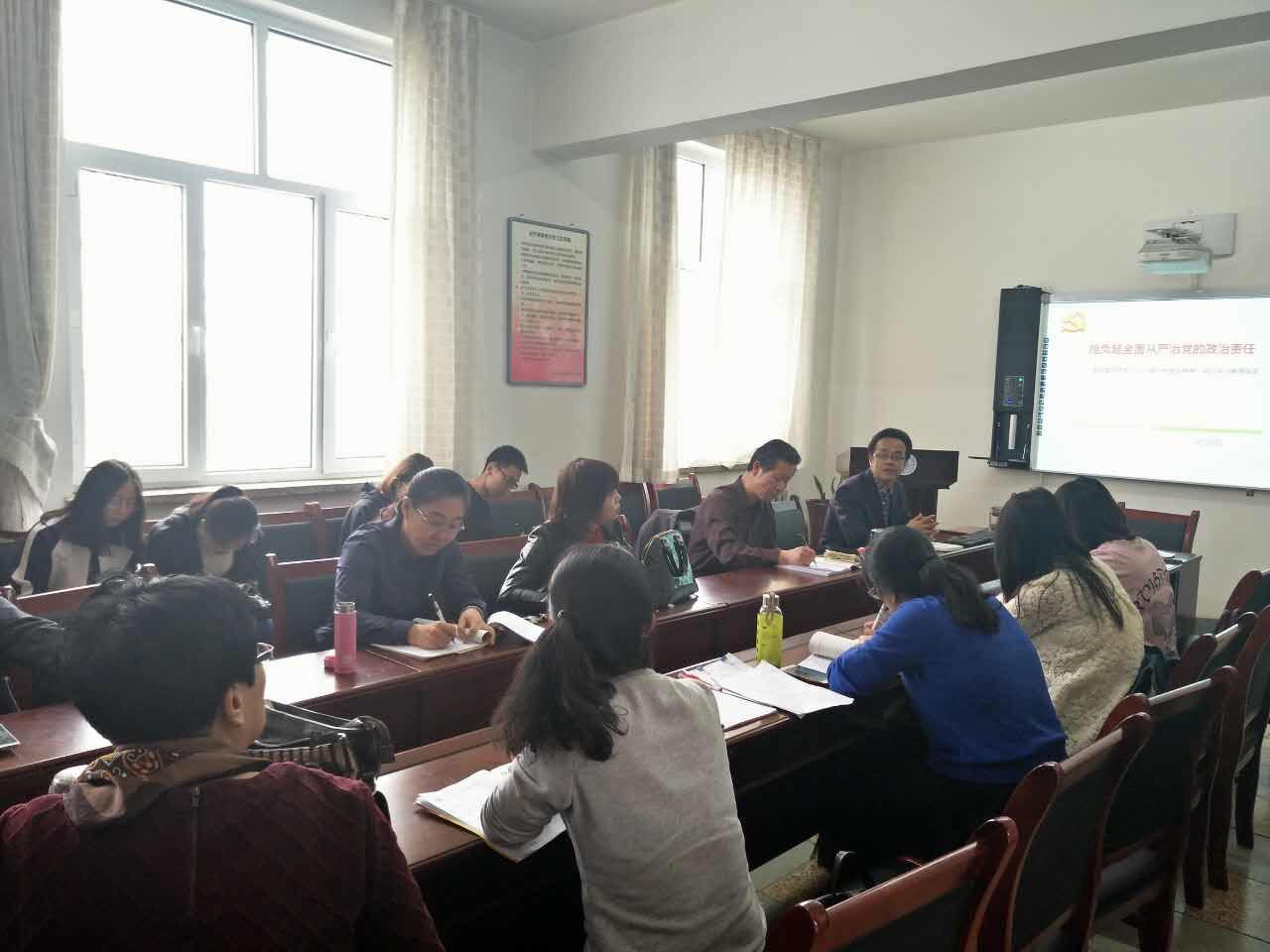 史继敏书记以“担负起全面从严治党的政治责任”为题作了辅导报告。他结合《全面从严治党面对面》辅导材料的内容,从维护核心、严明纪律、规范党内生活和担负管党治党责任等方面进行了阐述,使师生党员深刻认识到自己担当的责任和使命。