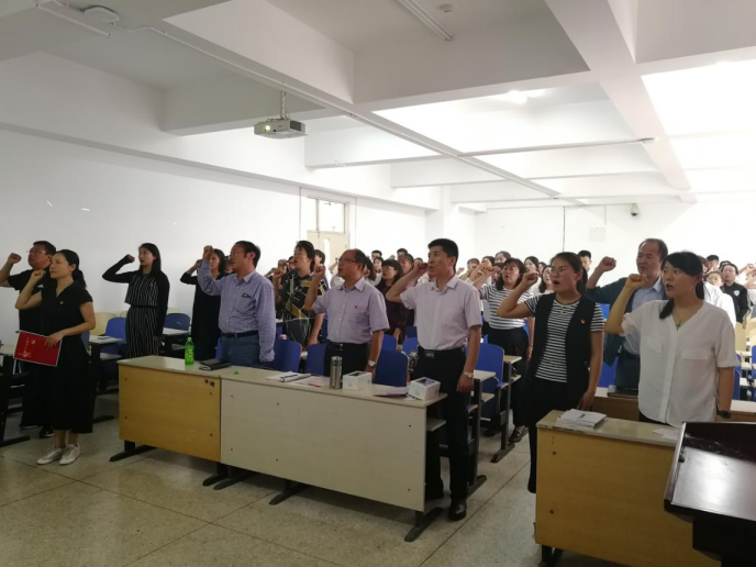 党课开始前,每位毕业生党员结合学习收获和生活感悟畅所欲言,分享自己四年的心路历程。之后,高日晨同志为毕业生党员送上祝福。他希望全体毕业生党员做到“诚、实、真、严、责”五字,每个字都包含三层含义,即希望毕业生党员要进一步坚定理想信念,增强党员意识,加强党性修养;提升自己的境界,树立自身的家国情怀,不断增强自身的文化素养,实现自己的人生价值和美好追求。最后,由教工党员何欣带领全体师生党员向党旗庄严宣誓,重温入党誓词。
