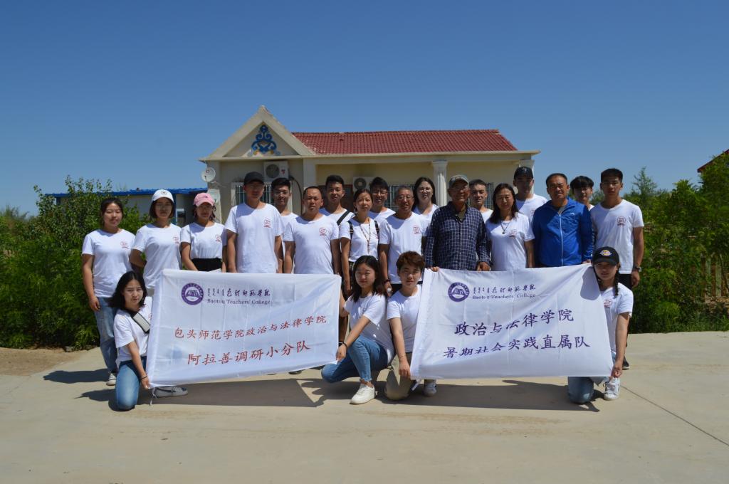为深入学习贯彻习近平新时代中国特色社会主义思想和党的十九大精神、团的十八大精神,庆祝新中国成立七十周年和纪念五四运动一百周年。在校团委统一部署下,7月13日至16日,政治与法律学院两支直属队赴阿拉善盟额济纳旗开展暑期“三下乡”社会实践活动。政治与法律学院党总支副书记米长存、团总支书记敖日布、专业指导教师王群、秦嗣权、陈翠娟参与并指导本次社会实践活动。