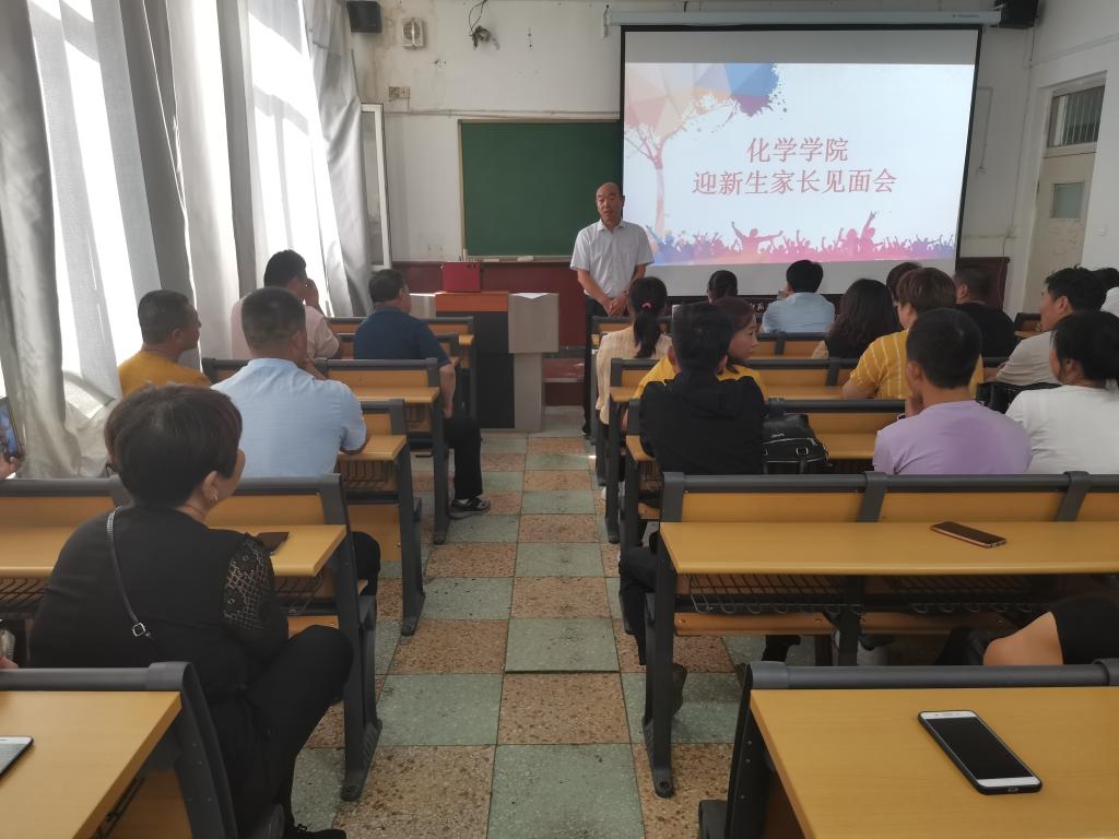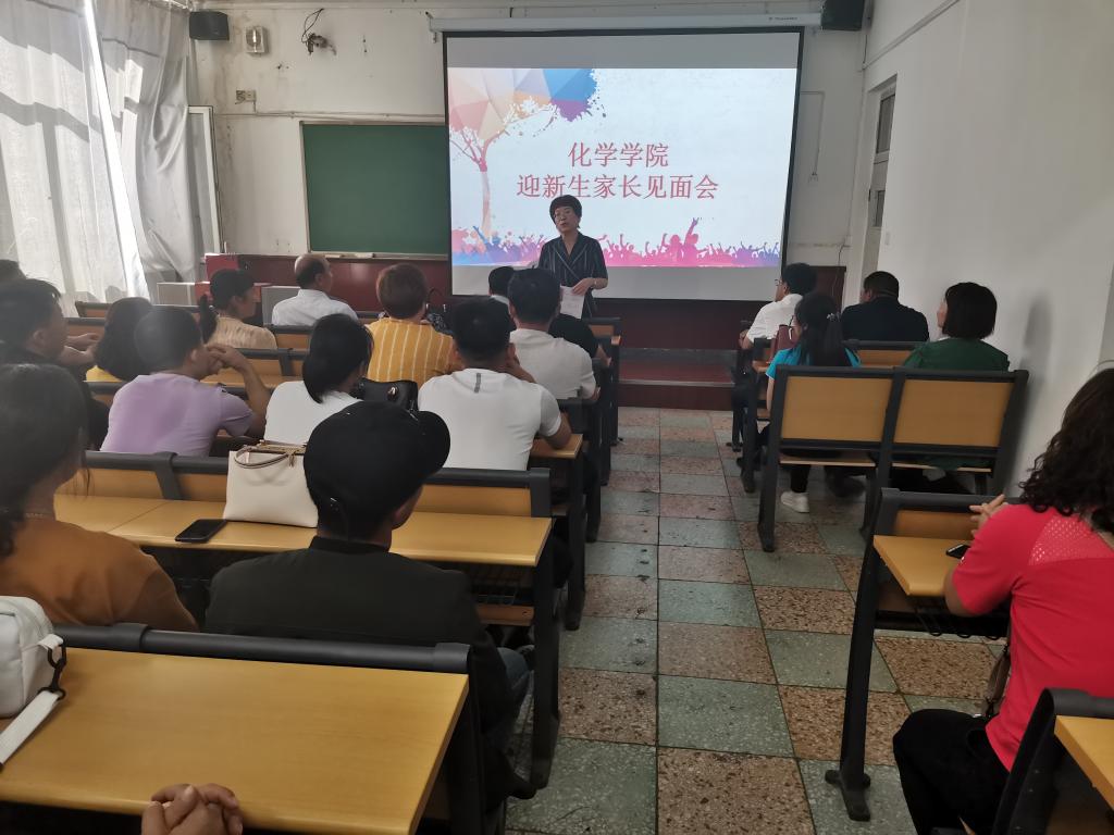 8月29日下午,化学学院在齐志楼301召开了2019级迎新生家长见面会。化学学院党总支书记史继敏,院长魏兵,党总支副书记、副院长冯丽以及新生班主任出席了此次家长见面会。本次家长见面会由冯丽老师主持。