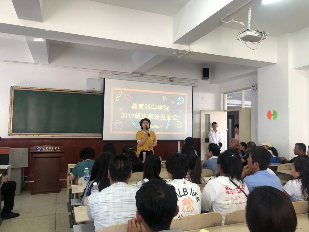 为了让广大新生家长深入了解学校、学院、专业及教学、学生管理等方面的情况,与学院协同配合做好新生的教育引导工作,使学生顺利度过四年的学习生活,实现健康成长成才的目标,8月29日下午,教育科学学院在博学楼400召开了2019级新生家长见面会。教育科学学院领导班子成员、各系主任、辅导员、新生班主任和助理班主任及新生家长共100余人参加了本次见面会。