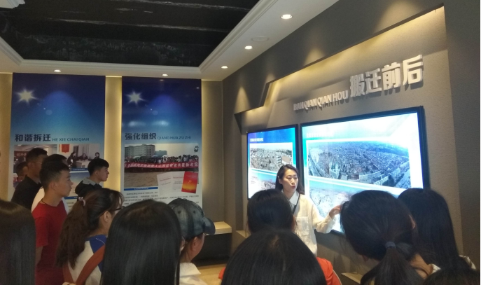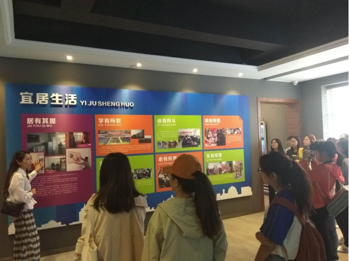 大家实地考察了召梁二道巷旧址房屋加盖的“一人巷”,深切感受到棚户区基础设施薄弱、居民生活条件差,居民生活之不易。2013年,李克强总理来到北梁对棚户区改造工作进行了考察和指导。经过包头市委、市政府本着改善棚户区居民生活环境,真正让老百姓体会到社会发展福祉,造福于百姓,经过“百日攻坚”等一系列举措,北梁棚改工作短短几年内取得巨大进展。十多万生活“八难”的北梁棚户区居民,纷纷搬迁入住到环境优美、生活设施齐备的北梁新区。同学们到北梁新区安居社区进行了实地考察,一座座漂亮的高层电梯房,一处处优美的庭院绿地花园广场,社区配套完备的幼儿园、小学、社区门诊和居民活动室,居民业余文化活动丰富多彩,北梁居民生活水平、生活质量真正实现了“提质升级”。