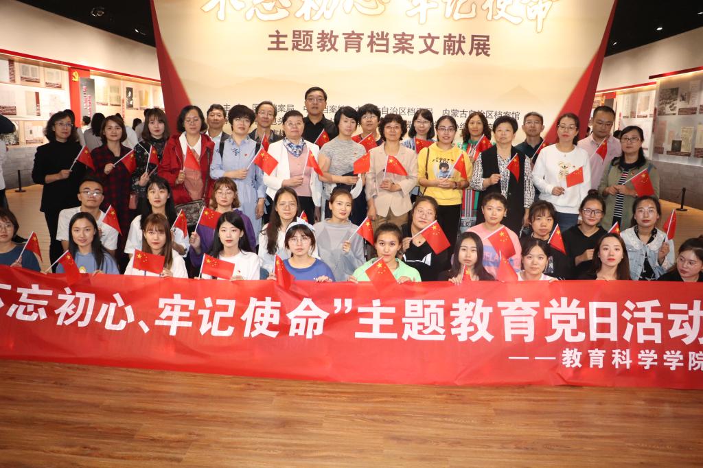 为庆祝中华人民共和国成立70周年,深入学习贯彻习近平总书记关于“不忘初心、牢记使命”主题教育系列重要讲话、重要指示批示精神,推进“不忘初心、牢记使命”主题教育工作,9月29日下午,教育科学学院、政治与法律学院、化学学院党总支联合开展了“献礼七十年”主题党日活动,组织120余名师生党员赴包头美术馆参观“不忘初心 牢记使命”主题教育档案文献展,通过一场思想政治的洗礼,引导广大师生党员发扬革命精神,传承红色基因,以不忘初心、牢记使命的政治责任迈向新征程。