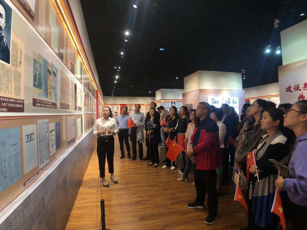 跟随讲解员的脚步,党员同志分别参观了“理论探索”、“理想信念”、“不懈奋斗”、“牢记宗旨”、“自身建设”5个展区,珍贵的历史档案和图片,展示了我们党对初心和使命的历史传承和生动实践,再现了中国共产党人为实现初心和使命前赴后继、英勇奋斗的光辉历程。一幅幅精选的图片,一页页珍贵的文献,让大家深受触动、深有感悟。展品中有中国共产党建设过程中的大量纲领性文件和革命导师、先辈的手迹、文物,如毛泽东、周恩来等老一辈无产阶级革命家的珍贵手稿。很多档案文献资料都是首次向公众展出,具有较高的史料价值和理论研究价值。活动最后,全体师生党员合唱了《我和我的祖国》,嘹亮的歌声振奋人心,表达着师生们对党和祖国的热爱。