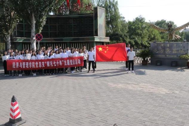 为庆祝新中国成立70周年,9月28日,经济与管理学院组织全体学生干部于在北方兵器城举办了“我与祖国共奋进”特别主题团日活动。活动由院易班全程录播。