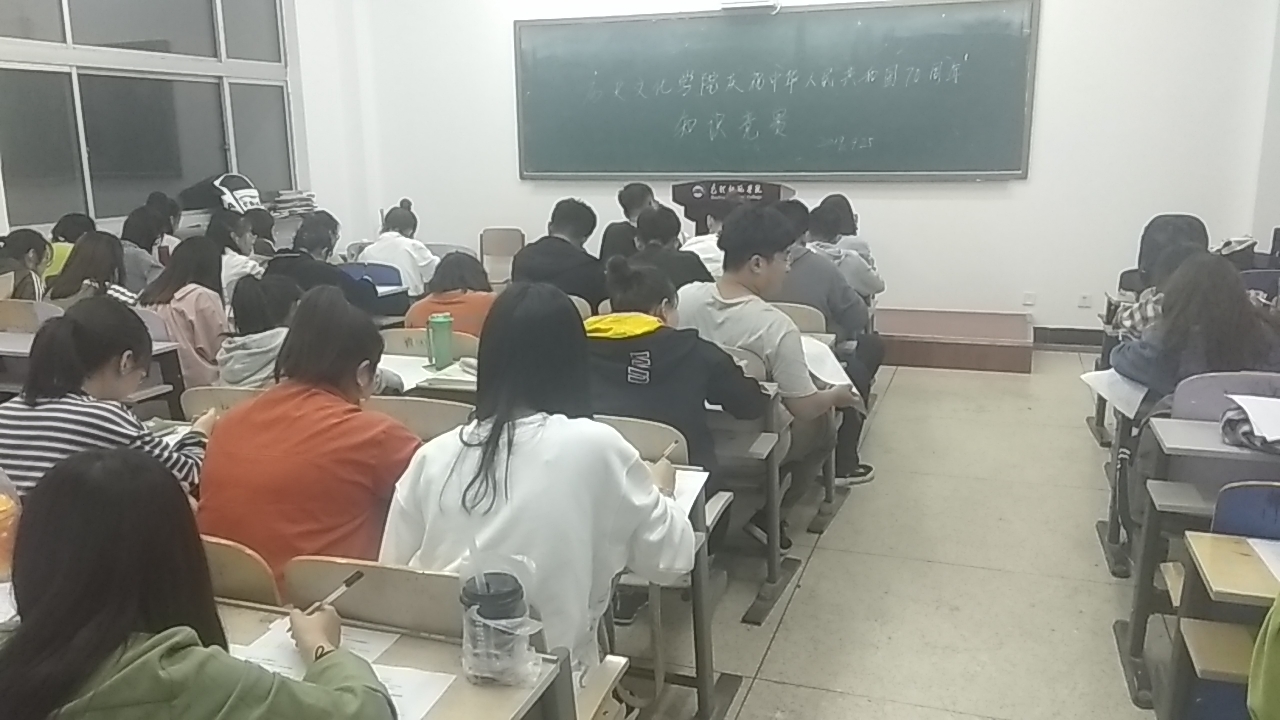 为庆祝中华人民共和国成立70周年,激发广大师生的爱国热情,凝心聚力,历史文化学院于9月25日举办了“壮丽70年 奋斗新时代”——庆祝中华人民共和国成立70周年主题党日暨知识竞赛活动。学院全体教师、研究生、本科生近500人参加了活动。