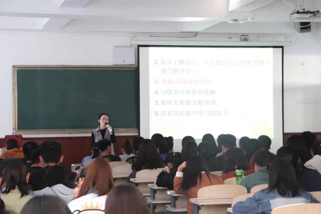 讲座由学院学工办魏婷老师主讲,她对大学生要智商情商并存、什么是心理健康的人及心理健康的标准进行了详细的阐述,让新生意识到要学会关注自己的心理状态,学会如何调节不良情绪,度过丰富美满的大学生活。最后,魏老师还对大学生的人际关系交往进行了简要概括。