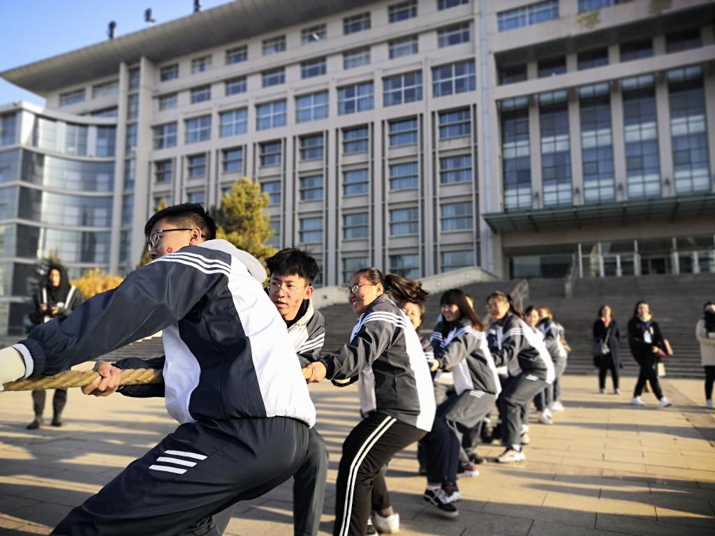 为庆祝中华人民共和国成立70周年,深入推进“不忘初心,牢记使命”主题教育,同时也为迎接教育科学学院2019级全体新生,丰富学院院师生业余文体生活,培养学生团队合作意识,10月26日,教育科学学院在博学楼南门及操场举办了“凝心聚力”趣味运动会暨迎新生入学教育活动。教育科学学院党总支书记张岫峰、院长郝红英、副书记副院长袁秀利、学工办主任方丽慧、19级班主任张思秦和郭佳、辅导员王璐然、贾煦添、梅雅娟、何美娜以及2019级全体新生参与此次活动。