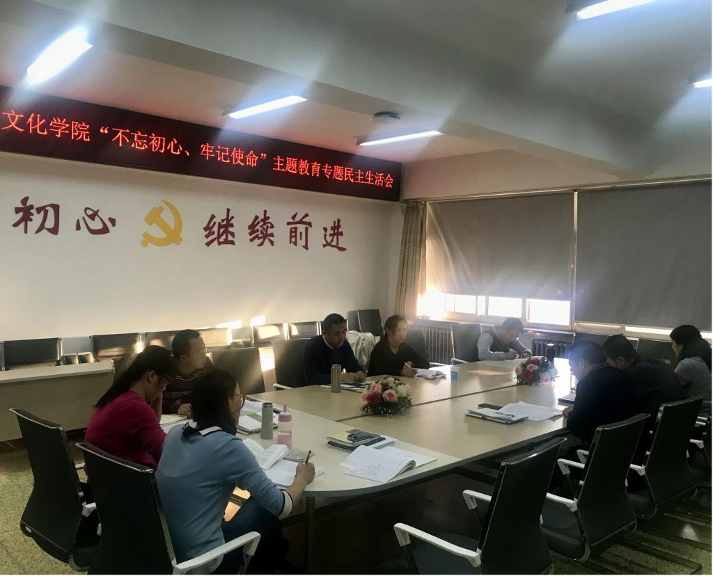 12月5日下午,历史文化学院召开了2019年度“不忘初心、牢记使命”主题教育专题民主生活会,学院领导班子成员、党总支委员、教师党员代表参加会议。学院党总支书记、院长胡琮禹主持会议,学校党委第五巡回指导组成员物理科学与技术学院党总支副书记副院长吕煜瑜到会指导并讲话。
