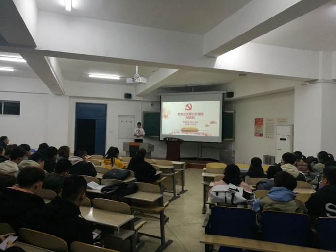 李佳蓉同志围绕“友善”价值观的重要性、“友善”价值观的科学内涵、如何践行“友善”的价值观三个方面展开。通过与同学们互动,并从自身角度出发,以自己的经历,探讨当代大学生应如何践行友善价值观。