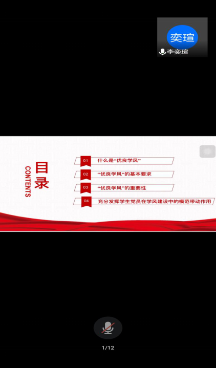 本次党课主要分为三大部分。主讲人介绍了优良学风的基本要求,让同学们对优良学风的概念以及怎么去营造一个优良的学风有了一个基本的了解。讲解了优良学风的重要性,重点展开介绍了优良学风促进“促三风,建三高”工作开展这一积极作用,使同学们清楚地意识到优良学风建设在此工作中的重要地位。着重强调了充分发挥学生党员在学风建设中的模范带动作用的重要性,明确指出学生党员要发挥思想政治上的引领作用、专业学习上的标兵作用、班级管理中的骨干作用,以及校园活动中的组织作用。她在强调的同时也对学生党员寄予厚望,希望学生党员可以以身作则,争做学习标兵并发挥凝聚带头、示范激励的作用,为营造优良学风、建设美好校园尽职出力。