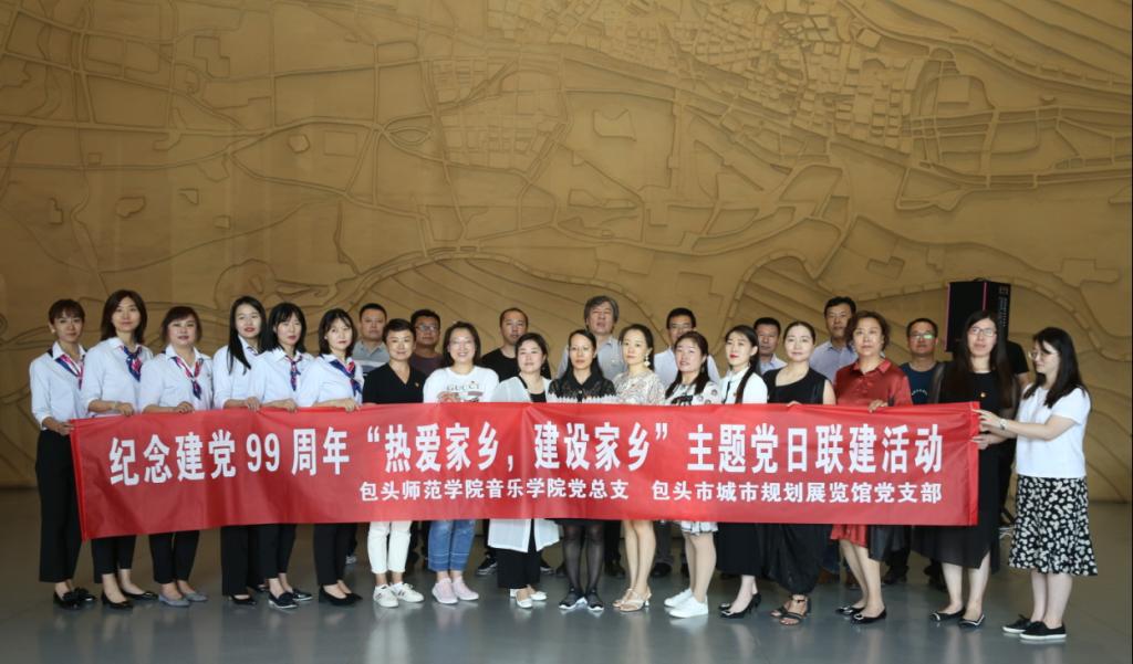 7月1日上午,音乐学院党总支组织学院教工党员与包头市城市规划展览馆党支部共同开展了庆祝建党99周年“热爱家乡,建设家乡”主题党日活动。
