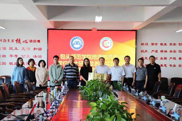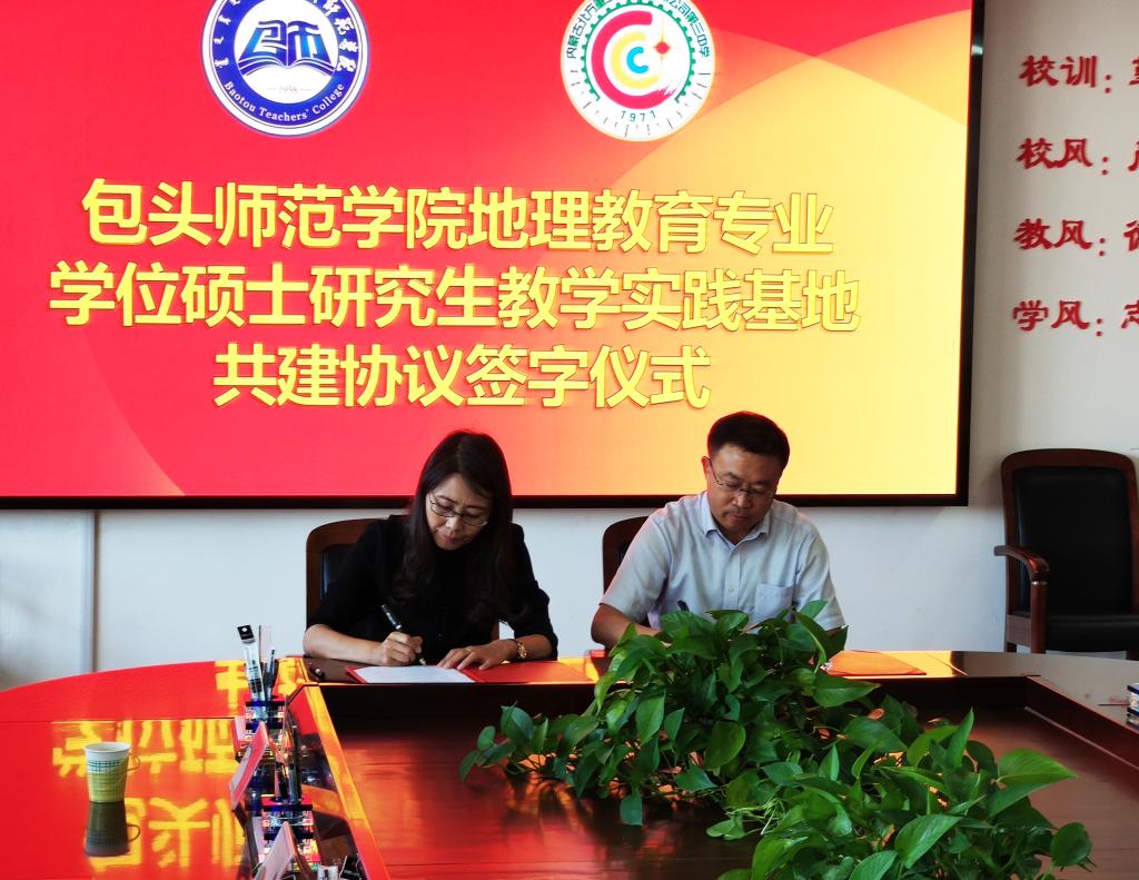 签字仪式上,宁小莉同志介绍了资源与环境学院发展历史及地理教育专业学位点的建设情况,并简要说明了合作的内容,希望通过打造合作亮点,不断创新合作模式,推进共同发展。刘高峰同志热烈欢迎我院师生的到来,提出从教学教研、科研等方面进行深度合作,把两个单位的合作模式打造成包头市的典范。
