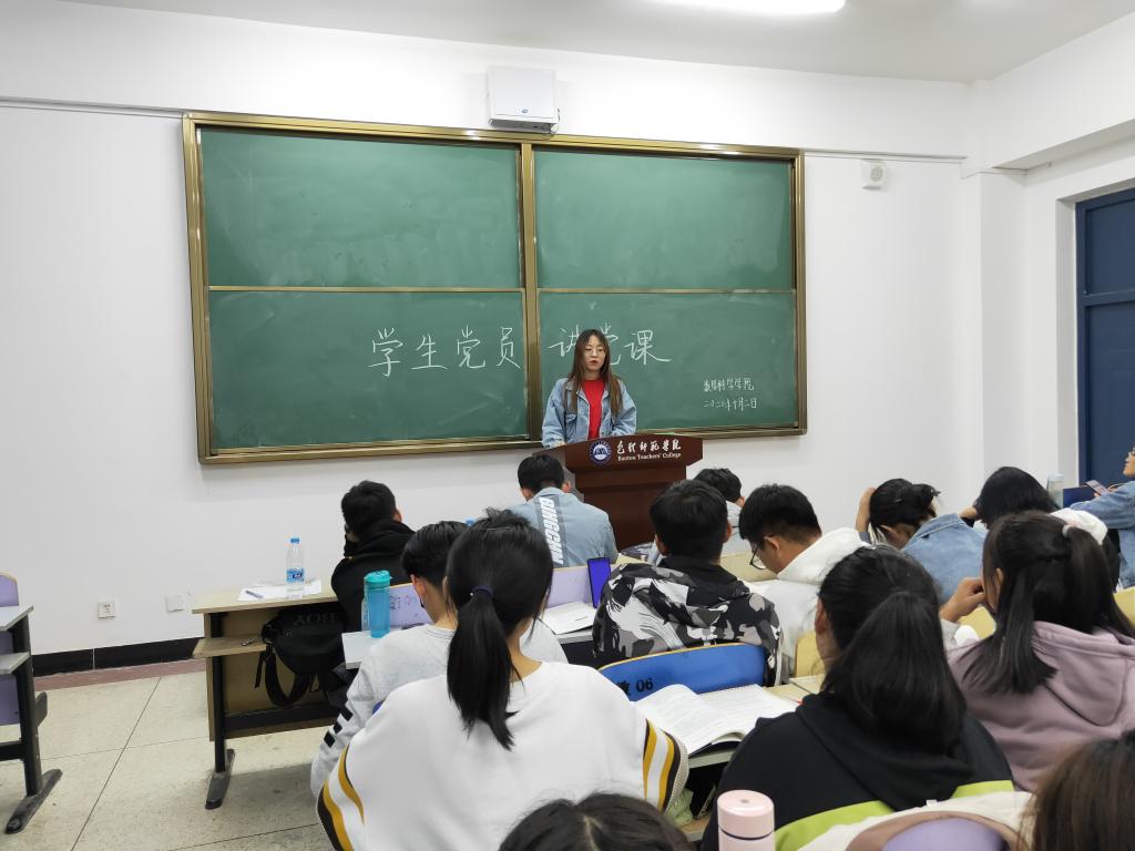 10月2日至5日,数学科学学院学生党支部组织学生党员进新生班级讲党课。学生支部17名党员分为四小队,以“奋斗的青春”为主题,分享自我成长、担任学生干部经历,通过通俗的语言,讲解了入党的程序与手续,并就如何争取加入党组织、党支部对自己的影响作用等内容与一年级学生深入交谈。