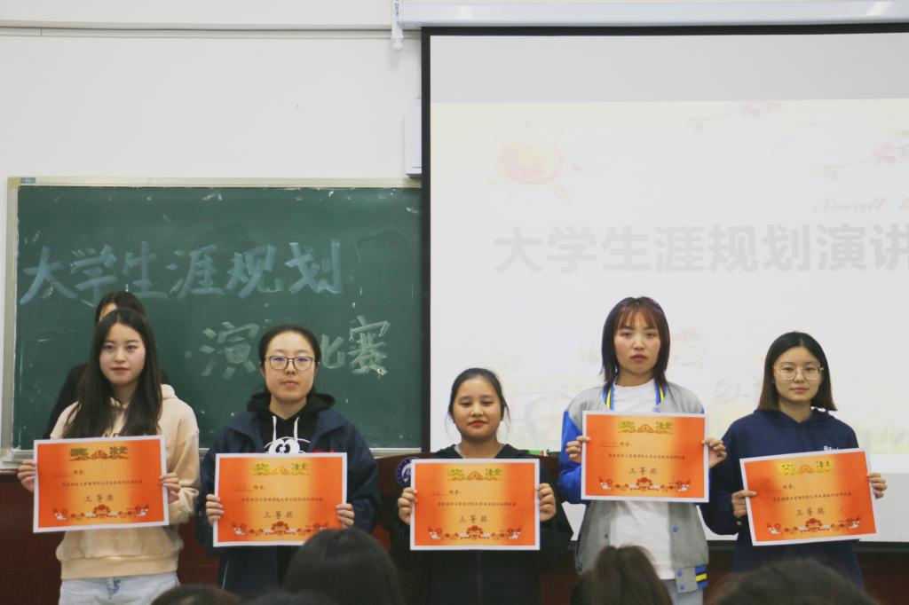 不同的学生有不同的想法,讲台上的他们将自己的大学生涯规划向观众以及评委展示。讲台上的同学都散发着经管学院的光芒,那一刻,他们就是主角。新颖的想法,清晰的谈吐,让评委听的入了迷。比赛没有真正的胜负,每一位参加比赛的人都打败了曾经的自己。这场比赛真正达到了让学生树立大学生活目标,为将来的生涯进行规划的目的。比赛十分激烈,各位评委本着公平公正的原则为每一位参赛选手评分,最终产生了两名一等奖,四名二等奖,五名三等奖以及优秀学生若干。整场活动进行的有条不紊,欢乐和谐,在主持人精彩的的祝福语中此次演讲比赛落下帷幕。比赛结束后,工作人员与现场参赛人员合影留念。