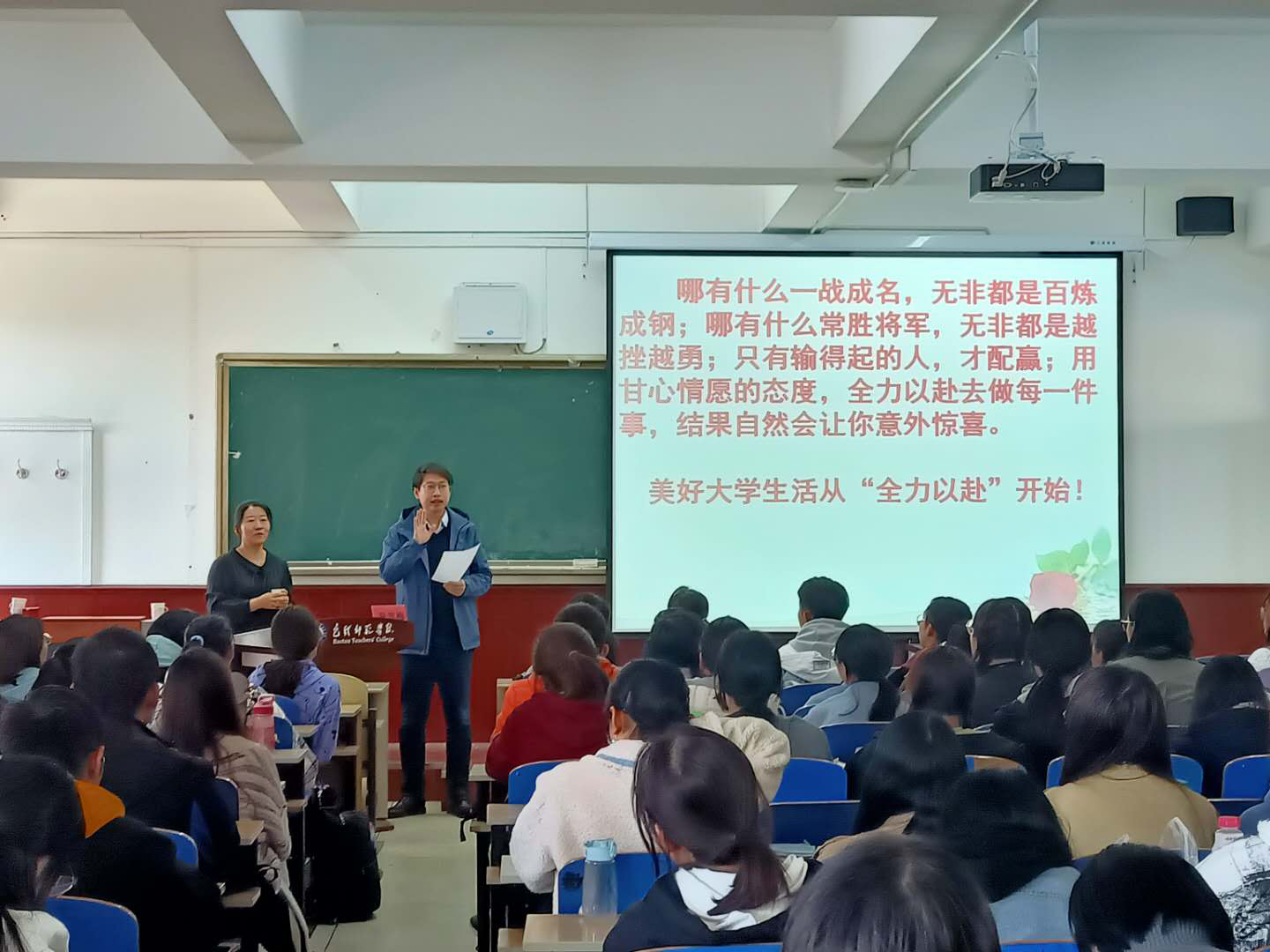 张雪梅老师围绕学以致用、学在当下、学无止境三个方面进行了讲演并向思想政治教育专业的同学们提出三点期望:第一,提升专业技能;第二,注重师范生技能的培养;第三,规划未来。