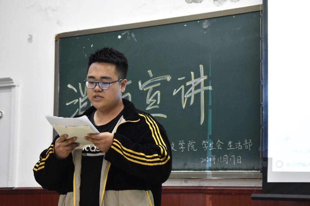 为宣传消防知识,增强同学们的安全意识,11月17日19:00,文学院在博学楼东101教室举办消防安全宣讲活动。文学院2019、2020级各班参加了活动。