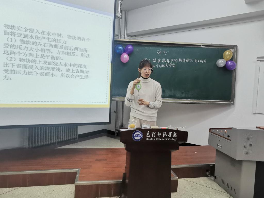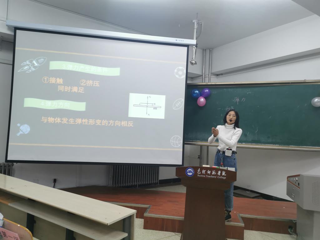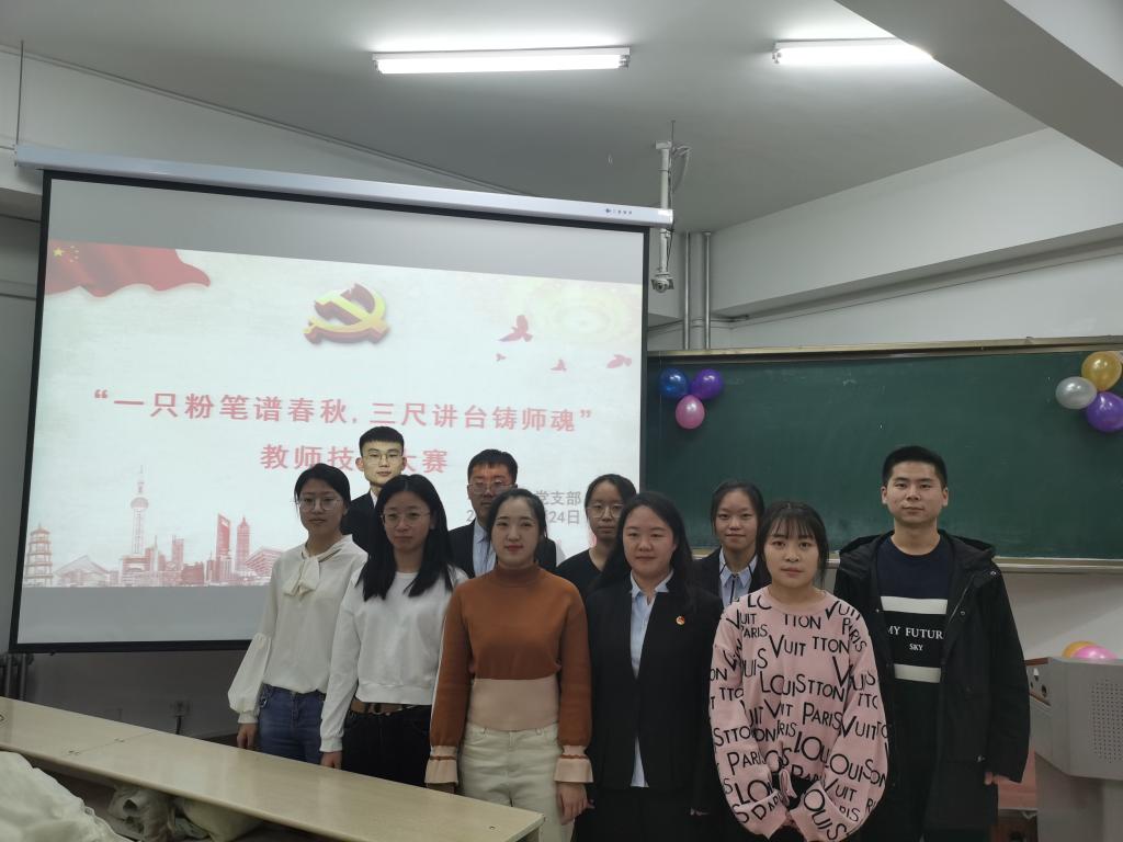 党支部11月24日于博西104针对19级物理学、物理ISEC专业举办了师范生教学技能大赛,物理学院党员教师苏虹、在读研究生党员石雪峰、明世洁担任参赛评委。大赛共有13个小组参赛,小组赛前联系正在中学实习的党员、已经毕业的一线中学教师党员和今年参加自治区师范生教学技能大赛获奖的支部党员进行指导,小组成员分工合作,教学设计、课件制作、教具制作、上台讲授,大家充分研讨打磨,力求把最优的作品呈现给大家。