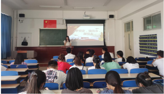 首先,由团支部书记赵旭同学以播放文献纪录片的形式回顾了中国共产党历经百年的艰苦卓绝、波澜壮阔的光辉岁月,接着,曹浩然、宋艳霞、丁圣伟、苏学伟、马宇飞同学带着饱满的热情为大家讲述了李大钊等革命先烈的感人事迹;郭鑫宇、吴闯、李意雪同学合唱了“没有共产党就没有新中国”;随后,大家共同参与了党史知识竞赛并重温了入团誓词。铿锵的誓言、庄严的承诺、激昂的歌声,表达着广大青年对中国共产党浓浓的热爱之情,同学们纷纷表示:“将笃实力行、不负韶华,践行青春使命,争做栋梁之材。”