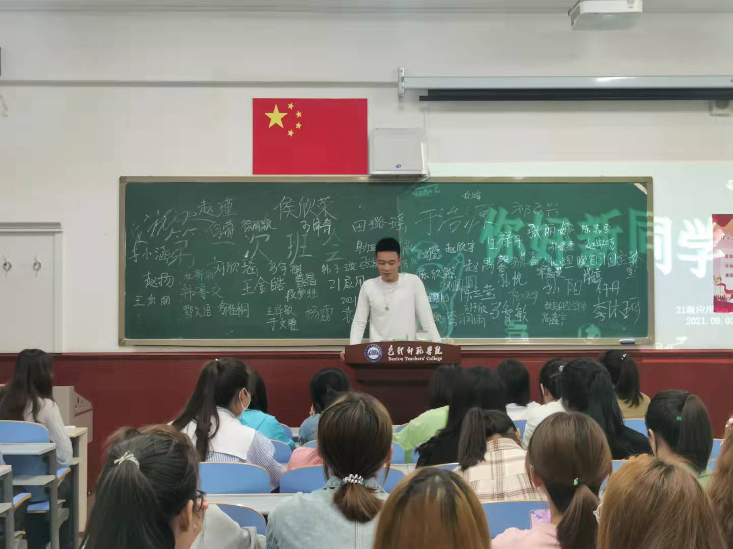 ——首次班会,引导要求。莘莘学子怀揣梦想与憧憬,陆续走进教育科学学院大家庭,开启人生梦想新征途。按照我院的安排和要求,9月3日-6日,新生各班级由班主任或助班主持,陆续组织召开了第一次主题班会,由班主任向新生介绍本学院的有关情况、本专业的培养目标及专业学习相关事项;对新生尽快适应大学新生活、建立新型和谐的人际关系、尽快融入班级大家庭、科学制定学业和职业生涯规划等方面的内容进行指导和鞭策,引导学生树立理想信念,志存高远,脚踏实地,刻苦学习。同时要求新生学习阅读《学生手册》和专业培养方案、了解掌握学校的有关规章制度、增强守纪观念、强化安全防范和自我保护意识。各班主任还建立了本班学生家长联系微信群,并按照学院要求,通过线上会议和微信联系等方式与家长沟通,介绍我院和专业的有关情况,建立了家校协同育人的渠道机制。