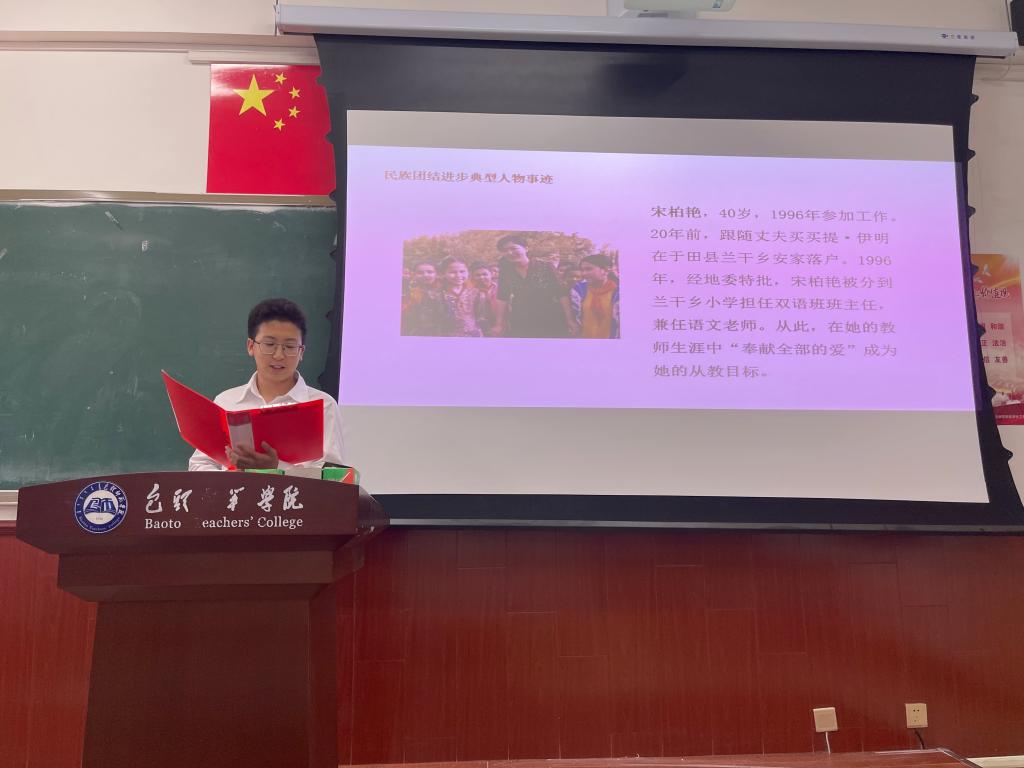 学生党支部于9月23日组织全体党员开展组织生活,学生一支部书记王璐然和副书记姜丽娟参加了活动。首先进行了相关文件学习,党员代表领学了《宗教工作政策理论知识读本》。随后,支部书记王璐然带领党员学习《铸牢中华民族共同体意识,推进国家统编教材使用和国家通用语言文字教育宣传手册》,党员认真聆听,并做好笔记。组织生活结束后,支部进行了以“民族一家亲,共筑中国梦”为主题的党日活动,八个党小组代表分别分享了关于民族团结进步典型人物事迹,例如布茹玛汉·毛勒朵、阿迪雅、孟亚静、都贵玛、宋柏艳等民族团结先进人物,进一步坚定党员维护国家统一,维护民族团结,维护社会稳定的信心和决心,提升了自身的政治敏锐性和政治鉴别力,同时牢固树立了学生党员“三个离不开”的思想。