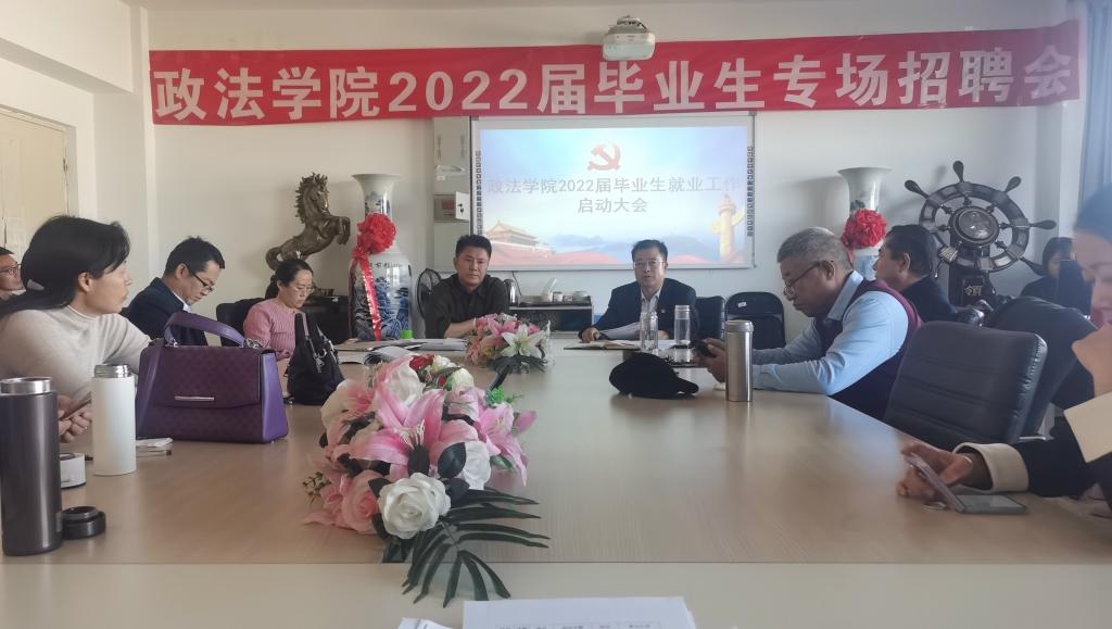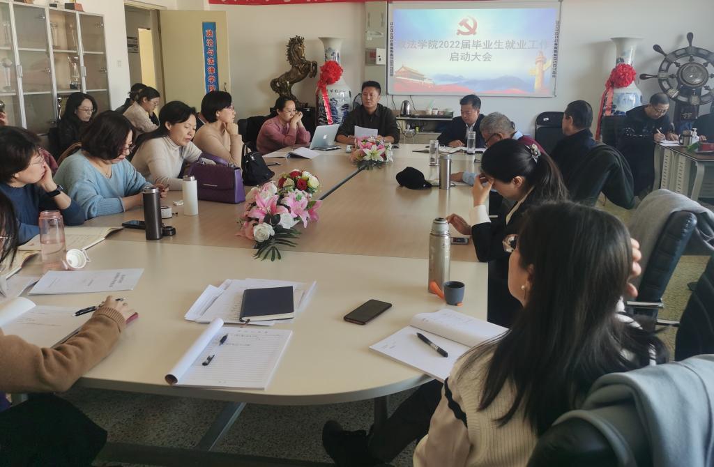 为深入贯彻落实党中央、国务院关于“稳就业”“保就业”工作的决策部署,积极推进疫情防控常态化下政法学院毕业生就业工作,10月21日下午,政法学院在学院729会议室召开2022届毕业生就业工作启动会。学院党总支书记高德胜、副书记郭宏升、副院长李霞以及全体教职工参加了会议。会议由党总支书记高德胜主持。